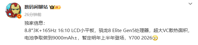 【CNMO科技消息】近日,有业内人士透露,联想旗下小尺寸安卓平板产品线将迎来一次重要升级,新一代联想拯救者Y700 2026款已预计将于2026年上半年正式亮相。作为该系列的迭代机型牛弘配资,新产品在屏幕、性能、散热与续航等方面均有望实现显著提升。